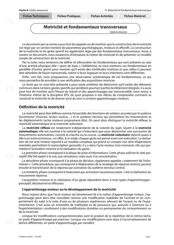 Motricité Et Fondamentaux Transversaux